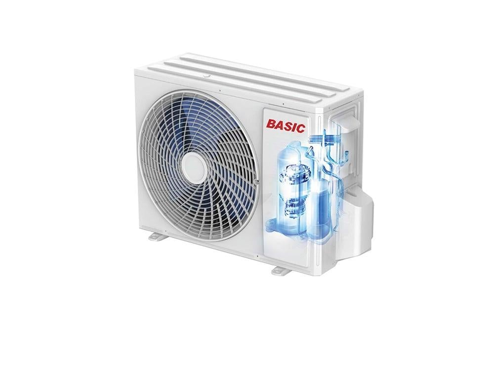 مكيف بيسك مزود بنظام عكس حركة المروحة الخارجية بحيث تعمل المروحة عكس عقارب الساعة لتنظيف الوحدة من الغبار والأتربة العالقة في المواسير و الزعانف